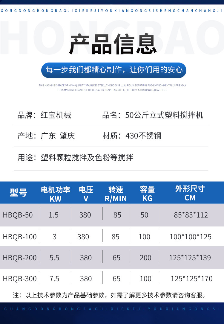 歡迎進入廣東紅寶機械科技有限公司 主營產品:臥式/立式塑料攪拌機