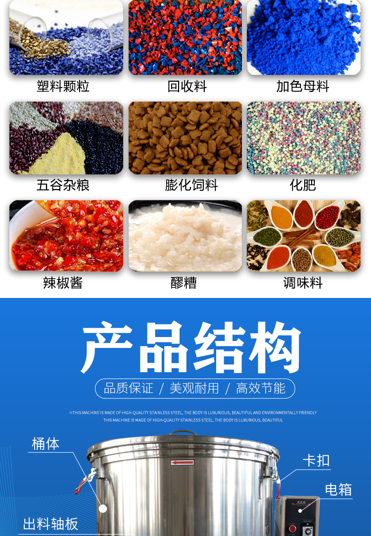 小型塑料攪拌機立式混色機不銹鋼塑料拌料機整機不銹鋼制作